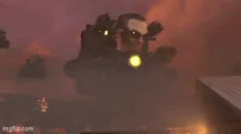 - Varios baños han ayudado al escape del Escuadrón G-Man, a saber, varios Aviones Explosivos Skibidi Toilet y un Trípode con Ácido Skibidi Toilet.