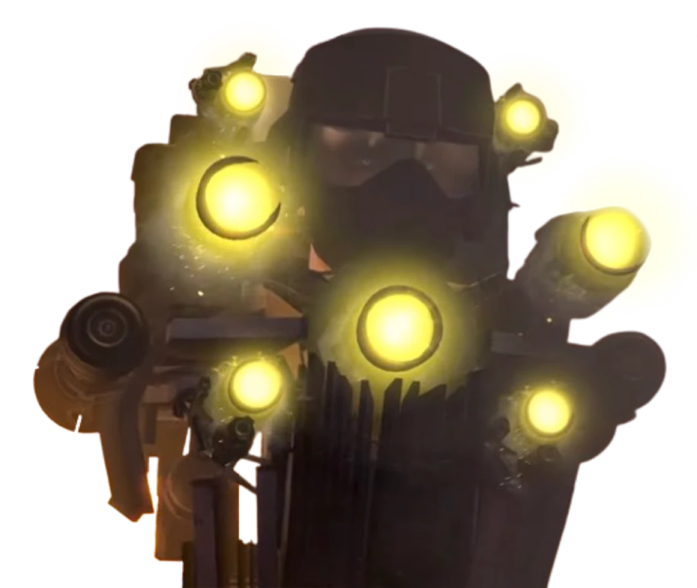 - La razón principal por la que G-Toilet pudo haber perdido la vista fue cuando Titan Cinemaman usó su rayo mientras G-Toilet atacaba con sus ojos láser y esto provocó que los láseres se dispararan hacia sus ojos, lo que podría haber causado más daño ya que G-Toilet aún podía usar fácilmente sus ojos láser después de ser atacado por la pantalla principal de Titan TV con parlantes.