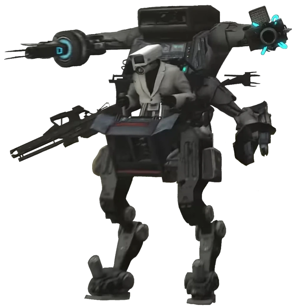 - Logró sobrevivir al ataque de G-Toilet 4.0 y escapó a tiempo antes de que su Mecha explotara debido al daño que le causó G-Toilet.