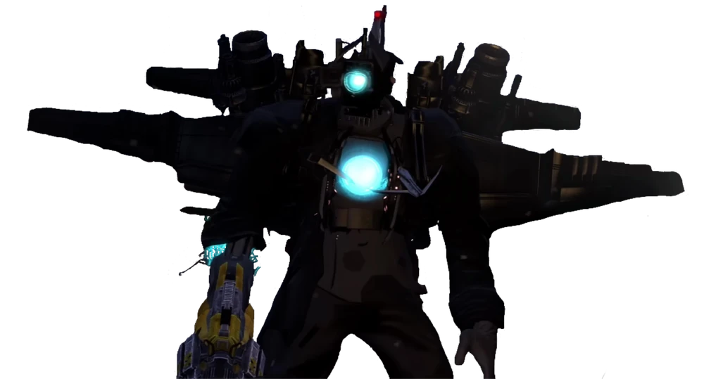 - Mató a un Trípode con Láseres Doble Skibidi Toilet y a varios Skibidi diferentes con un solo rayo potente, cada uno de ellos desde el cañón de riel montado en el antebrazo, que probablemente sea una muesca o más poderoso que el Cañón bláster del Titan Bocina.
