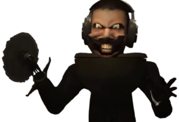 初登場時のバズソーミュータントスキビディトイレは、ラージカメラマンの物である胴体の上に灰色の便器、右手がバズソーとなっており、頭部にはヘッドホンを着用している。 第66話では新たにジェットパックが便器後部に取り付けられ、機動力が向上した。 また、第66話からテレビマン対策として常時サングラスを着用する様になった。