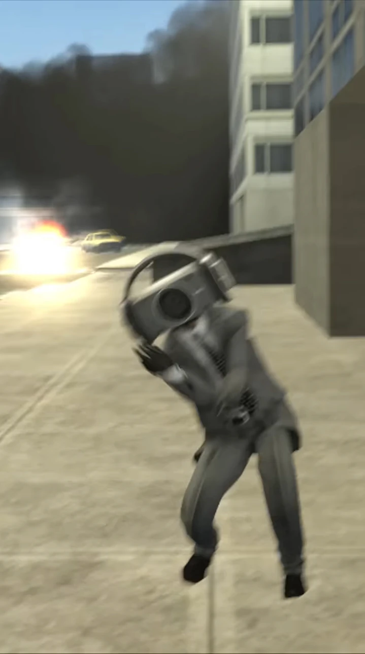 Gray Speakerman dancing while the Strider Speaker is attacking. |