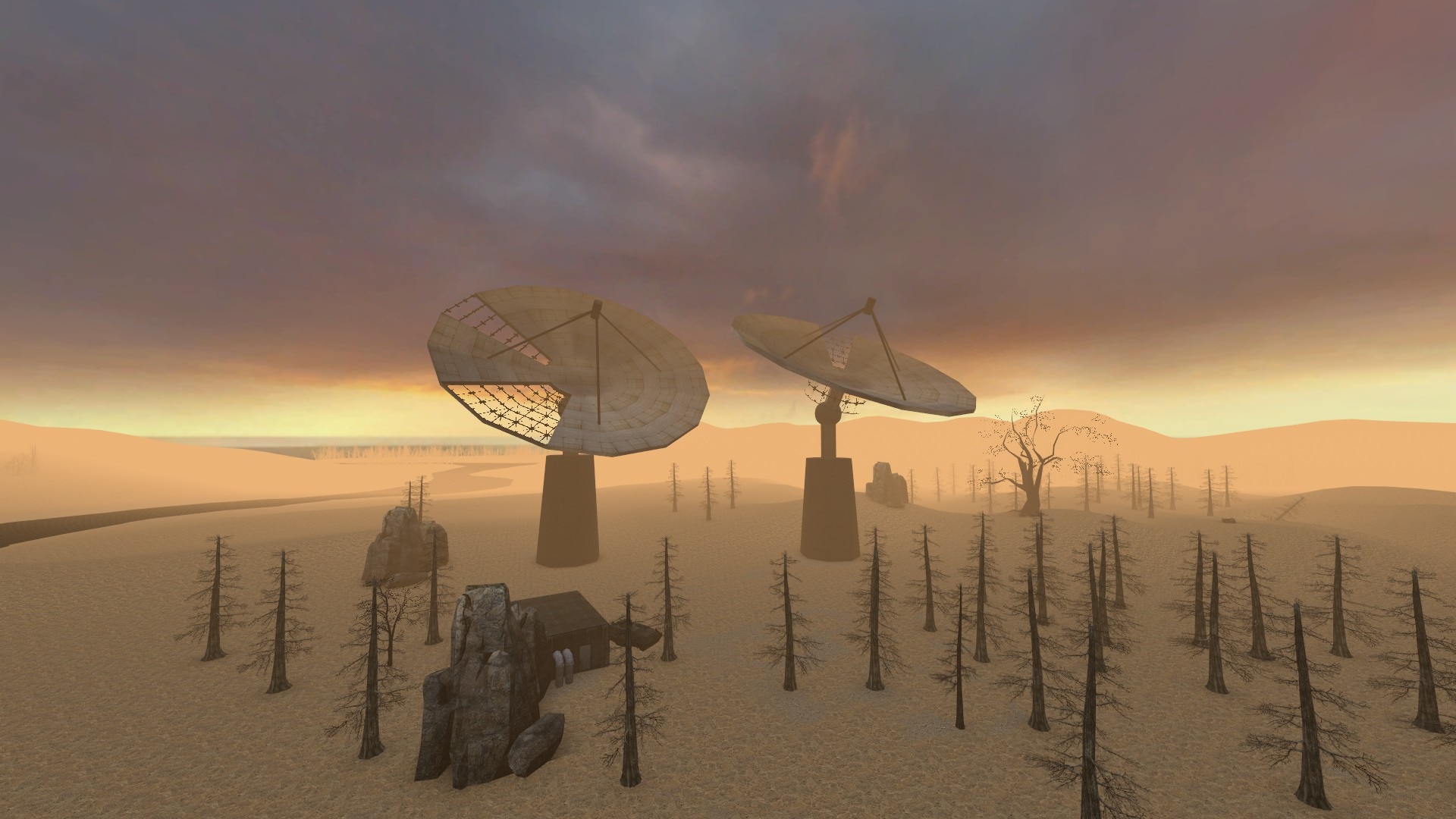 The ruined city is a destroyed city with many dilapidated buildings. There appears to be massive orange desert fog, military equipment, and other debris on the sandy ground. There are also speakers and a jetpack on the ground after Jetpack Dual Buzzsaw Skibidi Toilet cut them off from Titan TV Man, there are some sunken ships on the ground for an unknown reason, and by looking hard enough into the background, one can see several radars beyond the city.