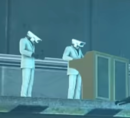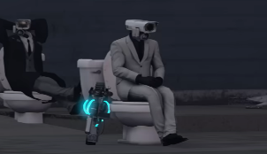 Scientist Cameraman 1337 preparing to fight the Skibidi Toilets alongside Plungerman.