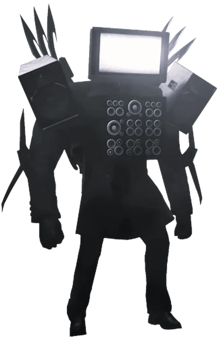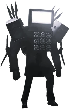 The Titan TV Man (or also called Cinemaman) is a mechanical colossus created by The Alliance, fabricated from unknown sources, but likely multiple components and attachments sourced from the TV Men headquarters. This Titan holds immense durability and strength, transcending both powerful physical and digital combat capabilities. He is the most powerful non-upgraded titan. Notably, he emits a radiant purple node at his core, supported by two claws mounted on his shoulders and hooks adorning on his elbows. He is also the leader of The Alliance.[1]